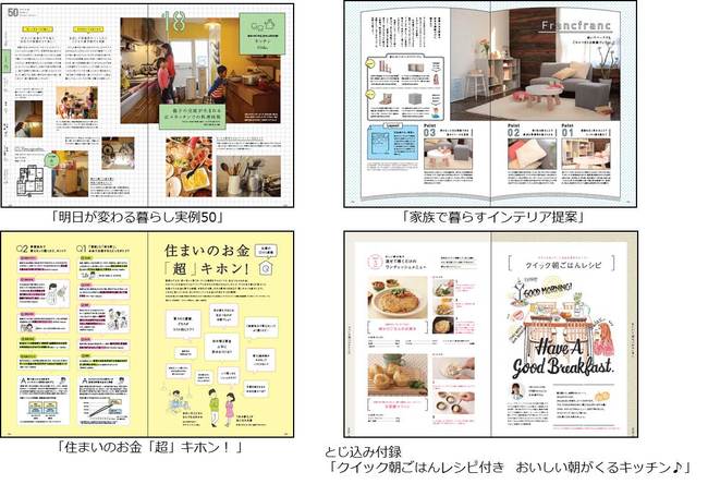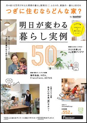 第一特集は「明日が変わる暮らし実例50」。“結婚をきっかけに“ ”子どもをのびのび育てたくて“など、さまざまなきっかけから暮らしの満足を軸に住み替え、月々10万円前後の住居費で理想の暮らしを手に入れた50組の実例を、写真や間取り図などを通じて具体的に紹介しています。また第二特集では、インテリア有名4ブランド(「無印良品」「IKEA」「Francfranc(フランフラン)」「ACTUS」)による、居心地の良い住まいを実現するための各社のアイテムを使ったアイデアを紹介。長い歴史と豊富なラインナップを誇る4社のアイテムを使って、30代夫婦と幼児の3人家族を想定した住まいで、したい暮らしを実現するための空間レイアウトを提案します。