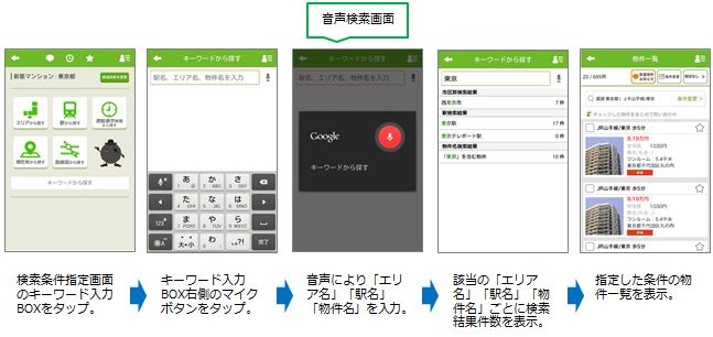 『SUUMO(スーモ)』のAndroidアプリは、音声からキーワードを指定して物件検索が可能な音声検索対応版へとバージョンアップしました。また、同時にWebサイトにおいてユーザからご好評であったキーワード検索にも対応しました。