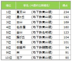 ――――――――――――――――――――――――――――株式会社リクルート住まいカンパニー(本社:東京都千代田区 代表取締役社長:野口 孝広)では、愛知県に居住している人を対象に実施したWEBアンケート形式による「2015年版 名古屋市在住者が選ぶ住みたい街ランキング」を集計しましたので、概要をご報告いたします。