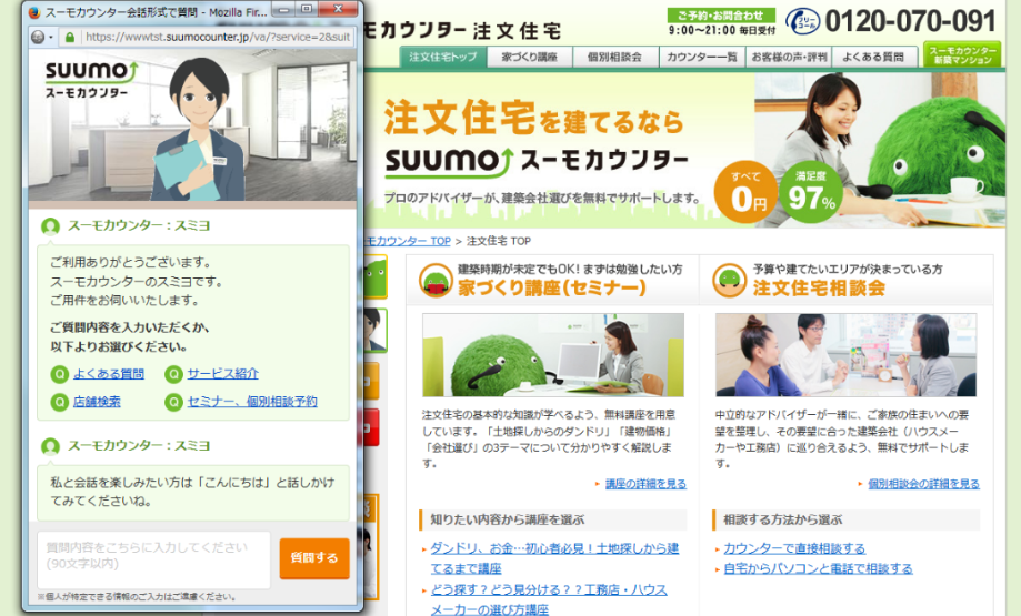 ① AIアドバイザー「スミヨ」、スーモカウンターのWebサイトに登場~24時間いつでも問い合わせ対応が可能に~
