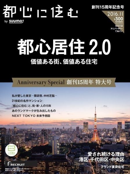 株式会社リクルート住まいカンパニー(本社:東京都中央区 代表取締役社長:野口孝広)が企画・編集を行う都心のプレミアム住宅情報誌『都心に住む』は2016年で創刊15周年を迎えました。これを記念して、東京都心の歩みとこれからの都心居住のあり方を模索する大特集や、21世紀の名作マンション紹介、隈研吾さんのインタビューなど充実した内容の15周年特大号を9月26日(月)に発売します。
