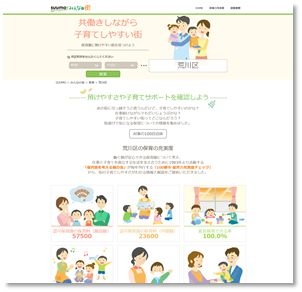 『共働きしながら子育てしやすい街』 は、「あの街に引っ越そうと思うんだけど、子育てしやすいのかな?」「子育てしやすい街ってどこなんだろう?」といった、住まい探しの際に気になる街の保育情報を提供するサイトです。
