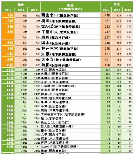 「2017年版 SUUMO住みたい街ランキング 関西版」を発表! 住みたい街1位は5年連続「西宮北口」、「なんば」が過去最高の3位!