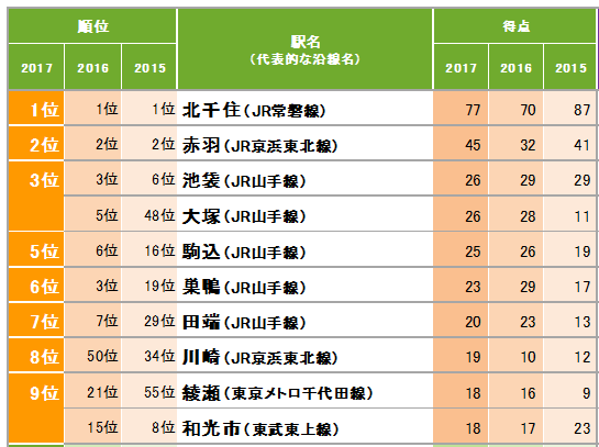 株式会社リクルート住まいカンパニー(本社:東京都中央区 代表取締役社長:野口 孝広)では、関東(東京都・神奈川県・埼玉県・千葉県・茨城県)に居住している人を対象に実施したWEBアンケート形式による「みんなが選んだ住みたい街ランキング2017 関東版」を集計しましたので、概要をご報告いたします。