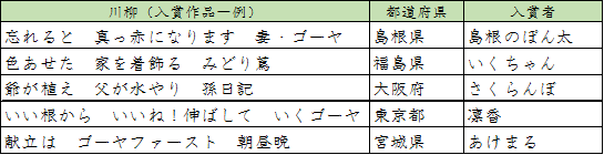 今回の応募数は過去最高数を記録し、「川柳」「完成写真」合わせて2070件と、昨年より大幅アップ(昨年1260件)。「緑のカーテン」の活動が、着実に広がっていることがうかがえる結果となりました。