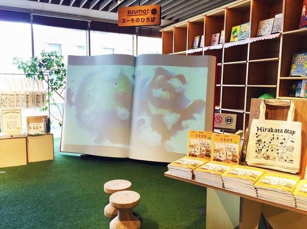 大阪府枚方市にある枚方T-SITEにて、巨大な本の模型(約縦2m×横2.7m)に、『SUUMO注文住宅』の記事を3DCGで映像化したものを、プロジェクションマッピングで照射。まるで、実際に雑誌を手に取ってぱらぱらと見ているような体験ができます。また、子供向けのフロアということもあり、記事の間にスーモの動画絵本も挿入。さらにその近くには、新聞の大きさに近いリアル巨大本も展示予定。大人も小さなお子様も楽しめる展開になっています。