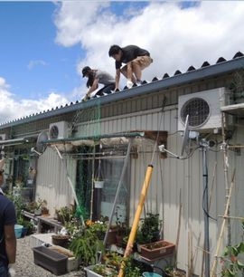 2017年は、リクルート住まいカンパニーより、ゴーヤーの種約1700粒を、NPO法人・緑のカーテン応援団へ提供させていただき、熊本・益城町のテクノ仮設団地の近くの農家様に、苗まで育てていただきました。その後、5月14日に、育てていただいた550苗を元に、熊本県益城町のテクノ仮設住宅の270世帯の方へ「緑のカーテン」を設置する作業を、緑のカーテン応援団とその他ボランティアの方々とともに行いました。