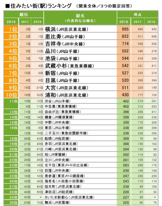 SUUMO住みたい街ランキング2018 関東版~総合1位は「横浜」~