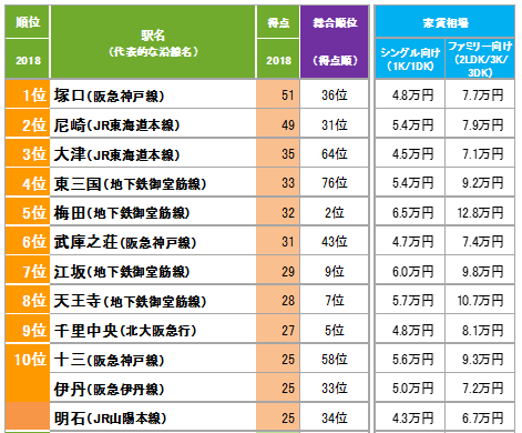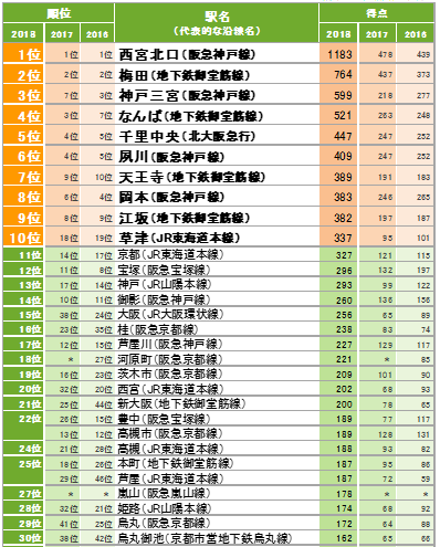 ~総合1位は「西宮北口」、10位には「草津」がランクイン~