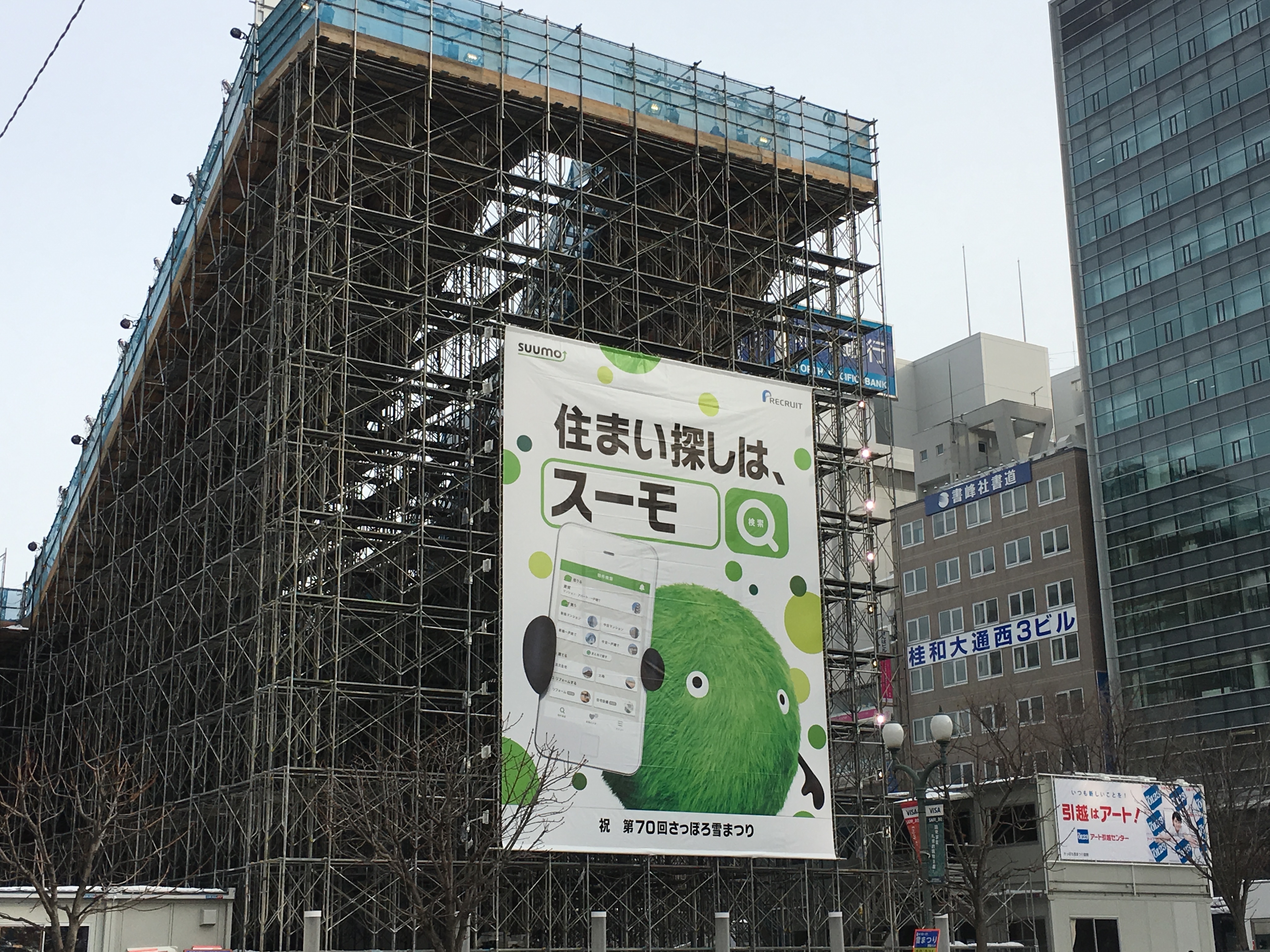 また、国内で活躍するスノーボーダーやスキーヤーが華麗なジャンプを披露する高さ約24mもの巨大ストレートジャンプ台(大通西3丁目)にはスーモ特大ポスターも掲出されています。