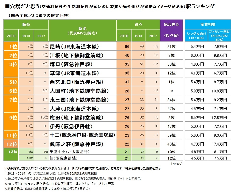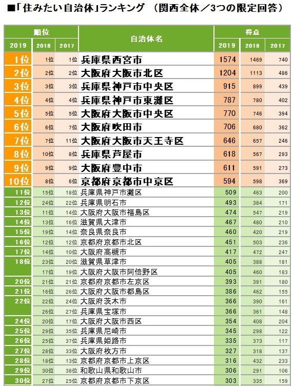 株式会社リクルート住まいカンパニー(本社:東京都港区 代表取締役社長:淺野 健)では、関西(大阪府・兵庫県・京都府・奈良県・滋賀県・和歌山県)に居住している人を対象に実施したWEBアンケート形式による「SUUMO住みたい街ランキング2019 関西版」を集計しましたので、概要をご報告いたします。