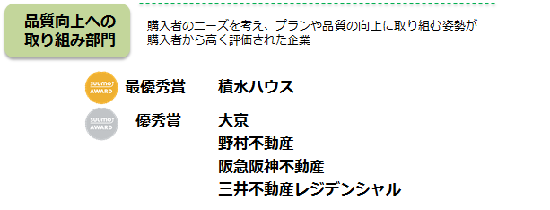 受賞企業は、各社のホームページやチラシのほか、不動産住宅情報サイト「SUUMO」内で、下記のロゴを使用していただくことができます。