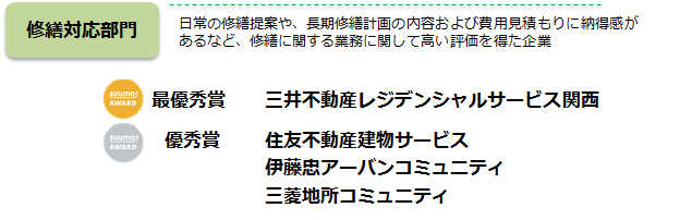 (修繕対応部門は同率だったため優秀賞が3社)