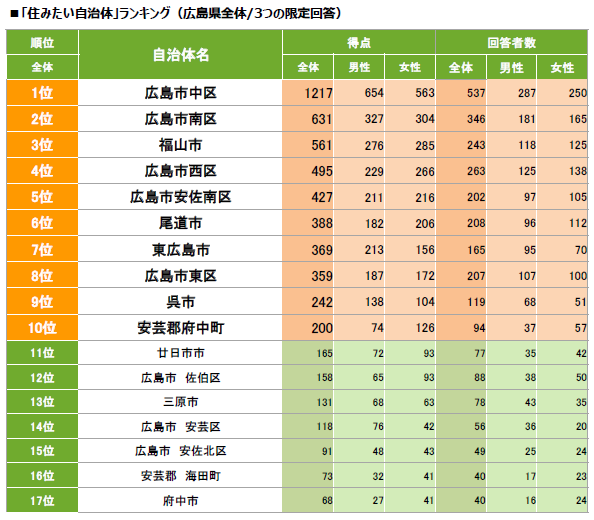 [広島県] 住みたい自治体ランキング