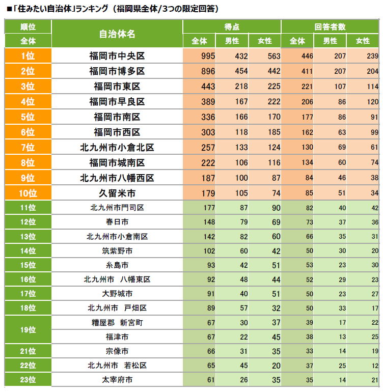[福岡県] 住みたい自治体ランキング