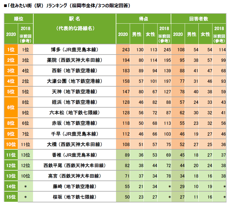 [福岡市]福岡市民が選ぶ住みたい街(駅)ランキング