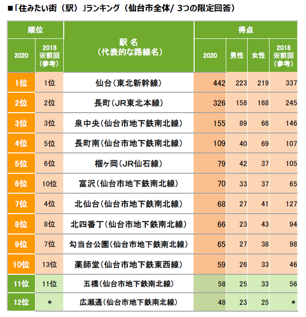 【仙台市】住みたい街(駅)ランキング