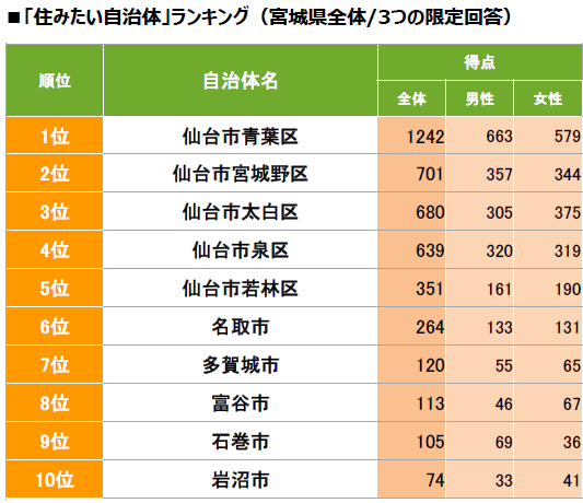 [宮城県] 住みたい自治体ランキング