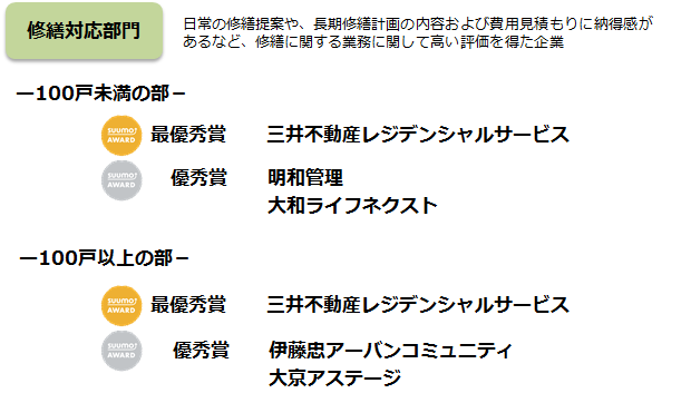 (総合評価100戸未満の部は3社)