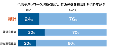 毎日会社に行く必要がなくなったことで、住まいに対する価値観にも変化が見られました。今後もテレワークが続く場合、4人に1人が住み替えを検討したいと回答しています。