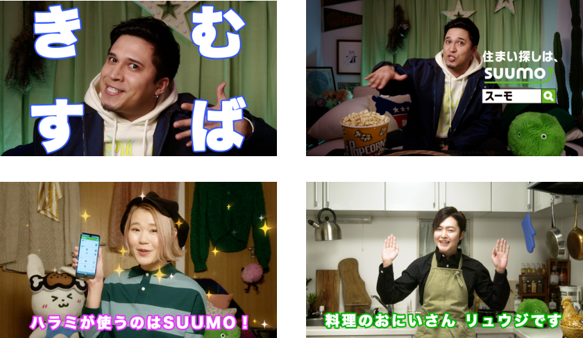 2021年から放映がスタートした、個性豊かな住人たちが暮らす「スーモハウス」CMシリーズ。TV-CMの香川照之さんや神木隆之介さん、西野七瀬さんなどに加え、今回のwebCMには声優の木村昴さんや人気YouTuberのハラミちゃん、リュウジさんがスーモハウスの住民として、それぞれご本人役で登場します。