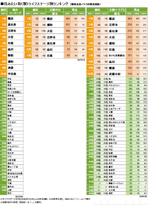 [関東] 住みたい街(駅)ランキング <夫婦、夫婦+子ども>