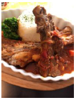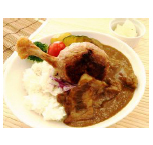 | 【①ご当地もち豚の肉×肉トマトカレー】 ご当地素材であるもち豚のスペアリブは、口に入れるとほろりととろけます。トマトの酸味が嬉しいカレー |
