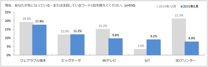 ①ITエンジニアが選ぶトレンドは1位「ウェアラブル端末」 「IoT」も5.6%伸長の理由とは? ~定着・応用に高まる期待~