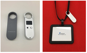 | ■ビーコンデバイス詳細 ・サイズ :63mm/20mm/7mm ・使用電池:リチウム電池(CR1632) ・重量 :約10g ・発信間隔:3秒に1回 ・発信範囲:3-5m ▶本プロジェクトでは、Eddystone-UID / Eddystone-URL(※3)のデュアルモードの携帯型ビーコンを独自開発し、それと連動する専用のスマートフォンアプリとWebサービスを用意しました。 |