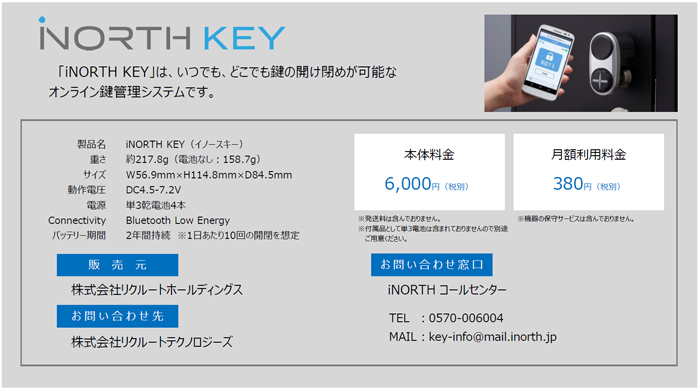 貸会議室も民泊も会社の会議室もスマホ一つで開閉が可能に。リクルートテクノロジーズ、スマートロック「iNORTH KEY(イノースキー)」不動産業界を超えた多様なニーズに応えてAPIを公開!