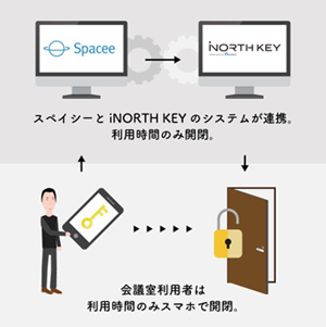 | 貸し会議室のシェアリングを行うサービス「スペイシー」では、一つの会議室を複数の方が利用するため、これまでセキュリティの強化を進めてまいりました。従来の鍵管理では、鍵の開閉にかかる手間がユーザーに対して負担となっておりました。 そんな中、「スペイシー」が「iNORTH KEY」とAPI連携を行うことで、鍵管理を自動化、無人でスペースを運用することができ、ユーザーとオーナーの双方にとって、ご利用しやすい環境を整えることができます。 ※上記サービスは今秋提供開始予定です。 |