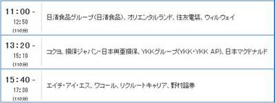 講演形式・各社20分でコンパクトに「あの有名な商品・サービスを作った」「グローバル事業を展開している」「事業にイノベーションを起こしている」など、普段聞けない活躍する現場社員の具体的な仕事エピソードを聞くことができ、企業・業界研究に役立ちます。