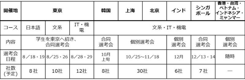・東京・上海・北京・シンガポールを始め現地にて選考会を実施し、 日本企業の人事担当者と現地の学生が直接出会う場を提供