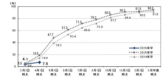 4月1日時点での大学生の就職内定率(※)は7. 5%