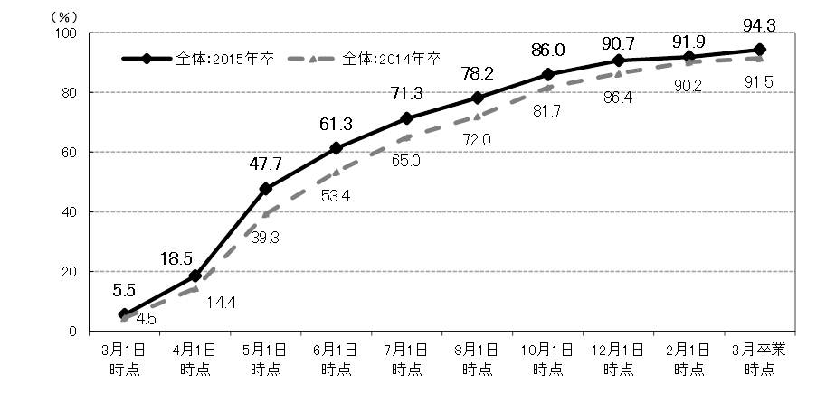 リクルート「2015年3月度(卒業時点) 内定状況について」【速報】- 『大学生の就職内定状況調査(2015年卒)』より -