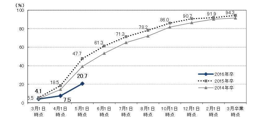 5月1日時点での大学生の就職内定率(※)は20.7%