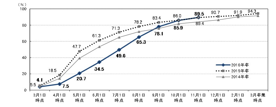 11月1日時点での大学生の就職内定率(※)は89.5%