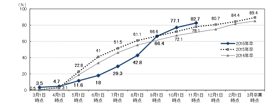 11月1日時点での大学生の進路確定率(※)は82.7%