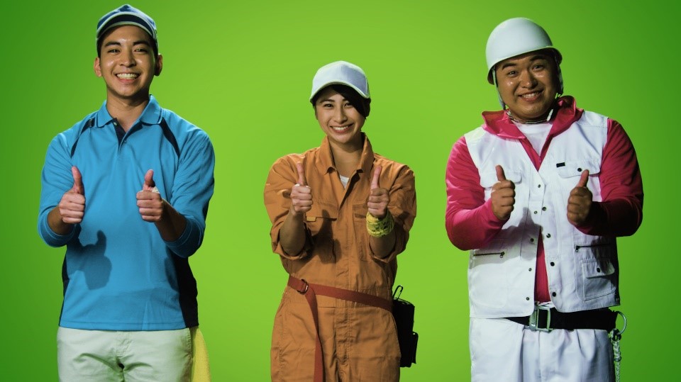 今回のCMでは、はたらいくをご利用いただくユーザーの職種として多い「鳶職」「自動車整備工」「ビル清掃員」「長距離ドライバー」「鉄工作業員」「警備員」を軸に、従業員・雇用主の双方向の目線を描きました。従業員の採用は「ひとがら」重視、雇用主からは「せきらら」に発信することで、就労時のハードルや誤解を紐解くことを目指します。