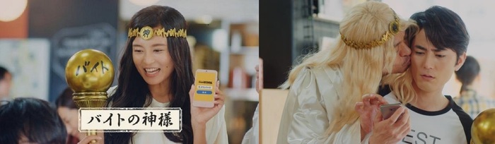 対象CMは、2019年1月1(元日)より放送開始した、松本人志さんが出演する「バイトの神様」シリーズCMの第4弾。 恒例の「バイトの神様」役の松本さんと「大学生」役の間宮祥太朗さんに加え、間宮さんの友人に付き添う美しい「バイトの神様」役の小島瑠璃子さんが登場する、シュールかつコミカルなストーリーが注目のCMで、幅広い世代の視聴者からの支持をいただくことができました。